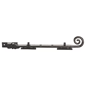 Hand-forged, antique black casement stay for use on timber casement windows.
