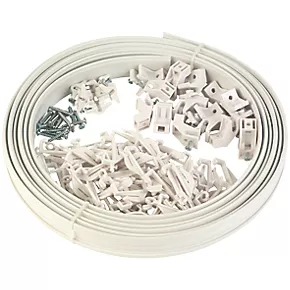 PVC curtain track with fittings for up to 3 average size windows or single extra-wide widths. For use with light to medium weight domestic curtains. Easy to fit and cut to size. Ideal for most windows including bays as the track can easily be bent by hand. Suitable for either ceiling or wall fix. Hook gliders feature an extra eye to accomodate seperate linings. The end caps provide an elegant finish. Brackets can be positioned anywhere along the track.