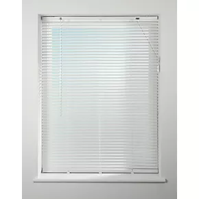 Venetian blinds with 25mm slats. Can be raised or lowered to a chosen height with the pull cord. Child safety cleat is supplied to secure loose cords.
