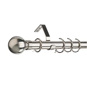 Stylish satin steel bay window pole with ball finial. Includes passing rings which glide over the brackets and corner joints which are flexible and allow to fit the contours of a bay window.
