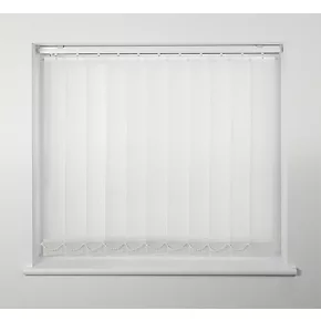 Cordless vertical blind. Operated using a wand which can be used to open, close and adjust the vanes. Width and drop can also be reduced by the installer.