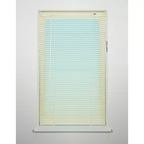 PVC venetian blind with 25mm slats. Can be raised or lowered to a chosen height with the pull cord. Wand is used to angle the slats as required. Child safety cleat is supplied to secure loose cords.